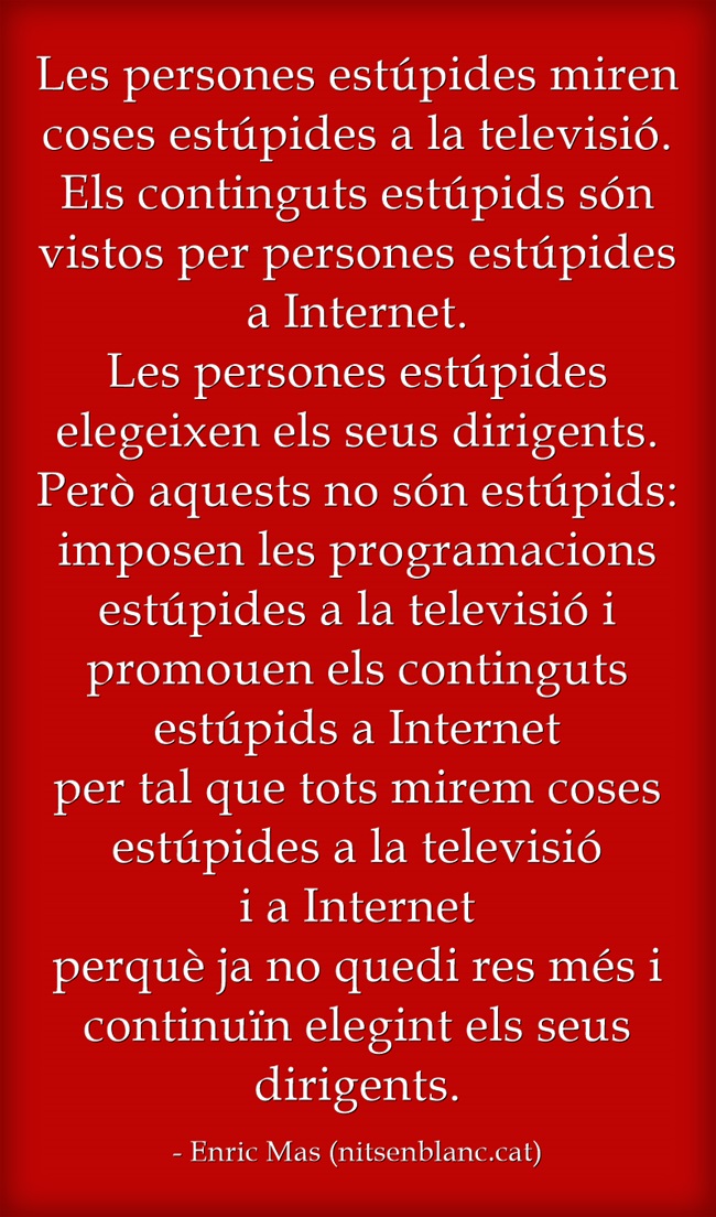 Aforismes propis que podeu penjar on vulgueu. Només us demano que hi deixeu anotat l'autor (no el canvieu, gràcies):