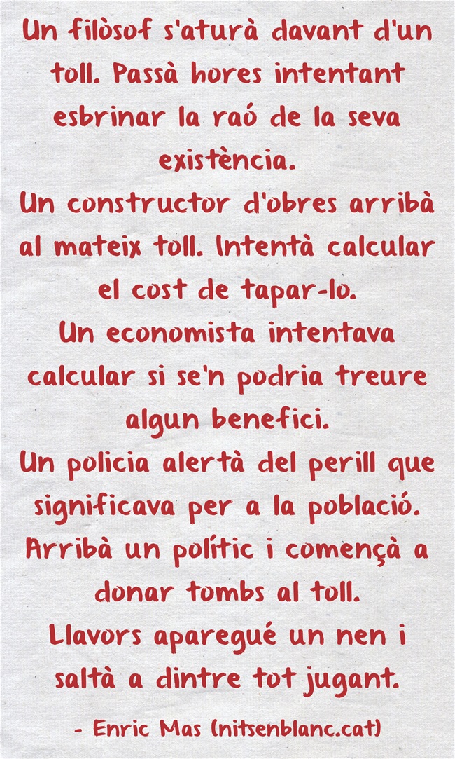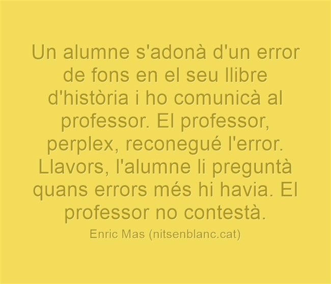 —Enric: què hi fas treballant a l'institut? —un profe amargat.