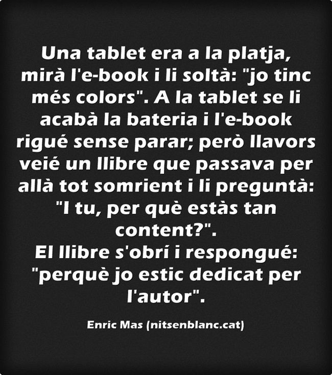 —"He llegit el teu segon llibre en una nit!!! Molt MACO!!! m'agrada!! continua així!! un petó!!" —Extracte de Facebook (11/05/11).