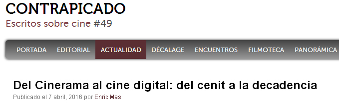 La prestigiosa revista CONTRAPICADO publica "Del Cinerama al cine digital: del cenit a la decadencia"