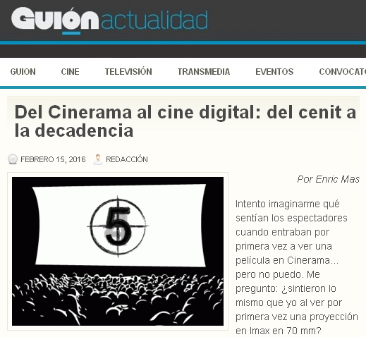FILM-HISTÒRIA (UB) publica el meu article "Del Cinerama al cine digital: del cenit a la decadencia" (Vol. 26, núm.1, 2016)